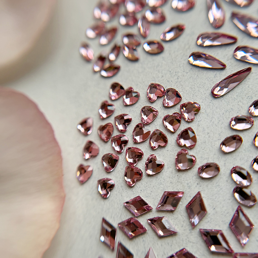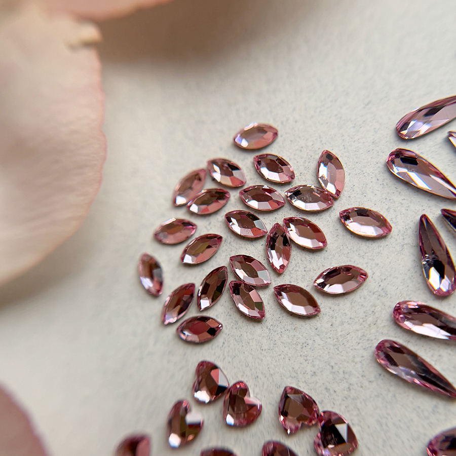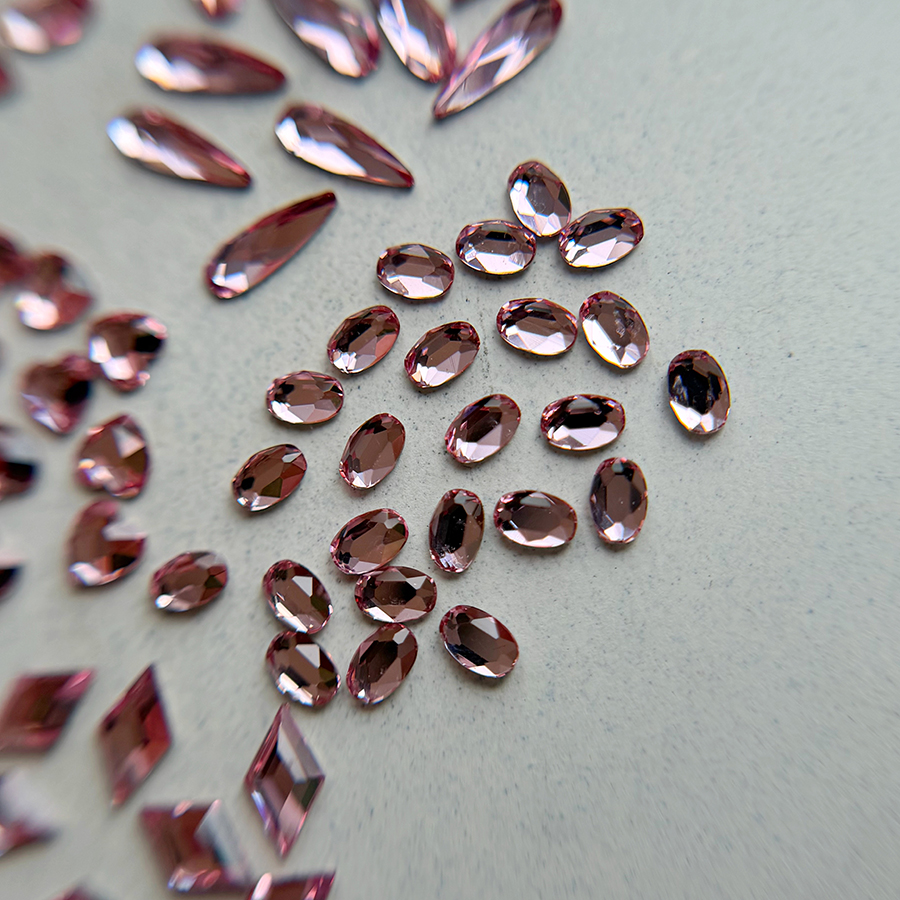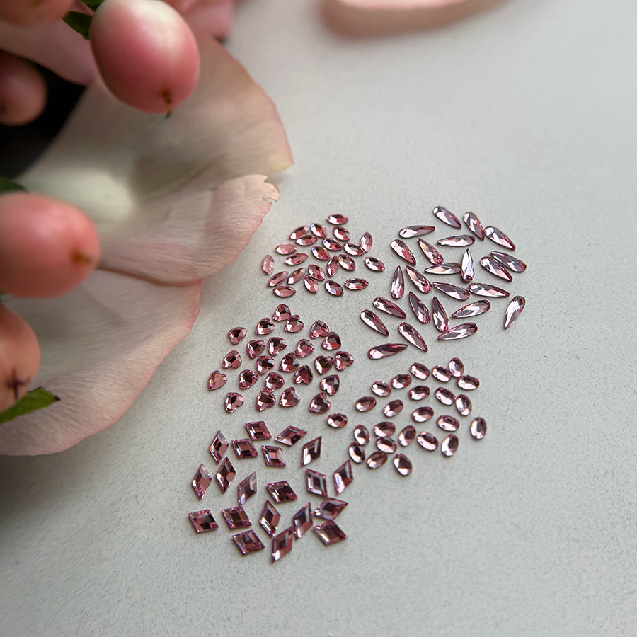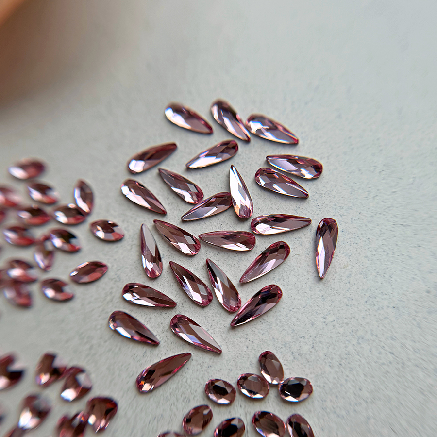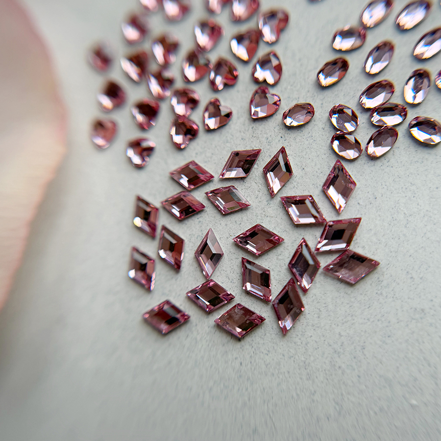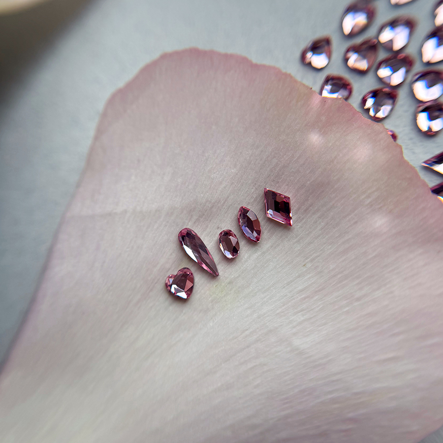 Un diamant forme est un cristal taillé dans une forme précise (goutte, losange, ovale, etc.) avec une base plate, conçu pour être facilement intégré aux montages de bijoux d’ongles.